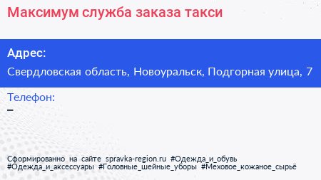 Максимум, служба заказа такси по адресу Свердловская область, Новоуральск, Подгорная улица, 7 в дальнейшем Организация, размещена в следующих категориях: