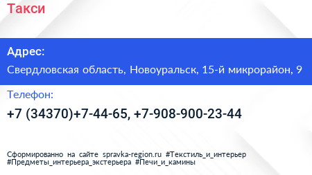 Такси по адресу Свердловская область, Новоуральск, 15-й микрорайон, 9 в дальнейшем Организация, размещена в следующих категориях: