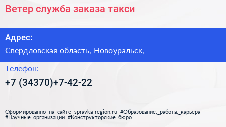 Ветер, служба заказа такси по адресу Свердловская область, Новоуральск, в дальнейшем Организация, размещена в следующих категориях: