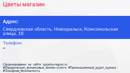 Цветы, магазин по адресу Свердловская область, Новоуральск, Комсомольская улица, 18 в дальнейшем Организация, размещена в следующих категориях: