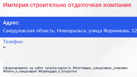 Империя, строительно-отделочкая компания по адресу Свердловская область, Новоуральск, улица Фурманова, 12 в дальнейшем Организация, размещена в следующих категориях: