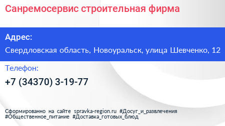 Санремосервис, строительная фирма по адресу Свердловская область, Новоуральск, улица Шевченко, 12 в дальнейшем Организация, размещена в следующих категориях: