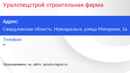 Уралспецстрой, строительная фирма по адресу Свердловская область, Новоуральск, улица Мичурина, 1а в дальнейшем Организация, размещена в следующих категориях: