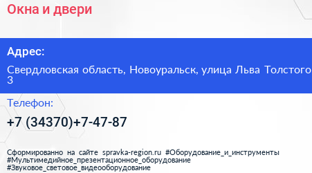 Окна и двери по адресу Свердловская область, Новоуральск, улица Льва Толстого, 3 в дальнейшем Организация, размещена в следующих категориях: