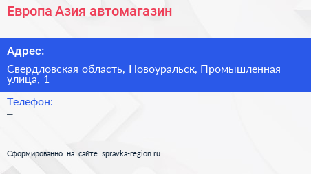 Европа-Азия, автомагазин по адресу Свердловская область, Новоуральск, Промышленная улица, 1 в дальнейшем Организация, размещена в следующих категориях: