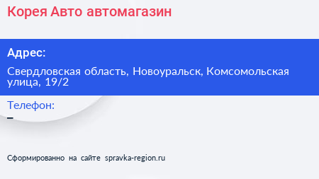 Корея-Авто, автомагазин по адресу Свердловская область, Новоуральск, Комсомольская улица, 19/2 в дальнейшем Организация, размещена в следующих категориях: