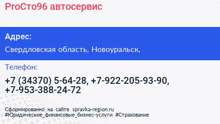 ProСто96, автосервис по адресу Свердловская область, Новоуральск, в дальнейшем Организация, размещена в следующих категориях: