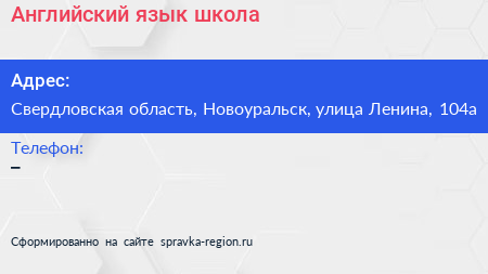 Английский язык, школа по адресу Свердловская область, Новоуральск, улица Ленина, 104а в дальнейшем Организация, размещена в следующих категориях:
