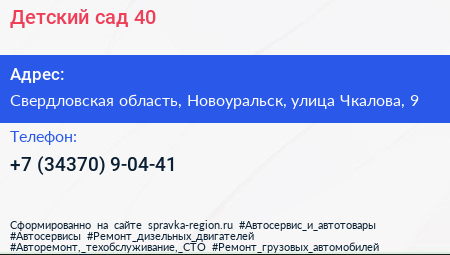 Детский сад №40 по адресу Свердловская область, Новоуральск, улица Чкалова, 9 в дальнейшем Организация, размещена в следующих категориях: