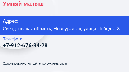 Умный малыш по адресу Свердловская область, Новоуральск, улица Победы, 8 в дальнейшем Организация, размещена в следующих категориях: