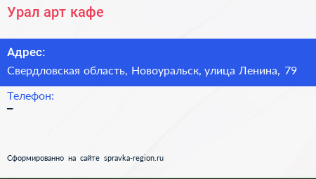 Урал, арт-кафе по адресу Свердловская область, Новоуральск, улица Ленина, 79 в дальнейшем Организация, размещена в следующих категориях: