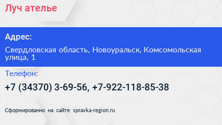 Луч, ателье по адресу Свердловская область, Новоуральск, Комсомольская улица, 1 в дальнейшем Организация, размещена в следующих категориях: