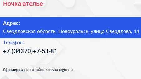 Ночка, ателье по адресу Свердловская область, Новоуральск, улица Свердлова, 11 в дальнейшем Организация, размещена в следующих категориях:
