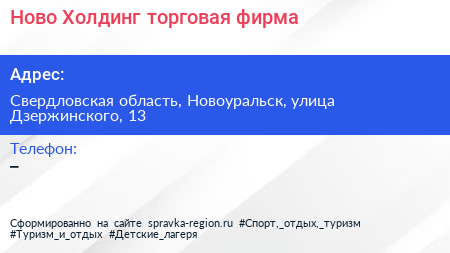 Ново-Холдинг, торговая фирма по адресу Свердловская область, Новоуральск, улица Дзержинского, 13 в дальнейшем Организация, размещена в следующих категориях:
