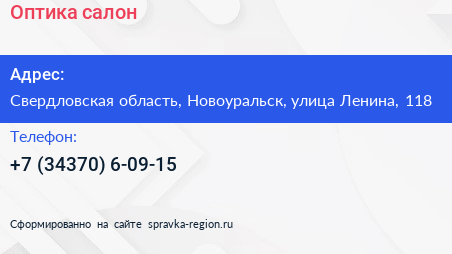 Оптика, салон по адресу Свердловская область, Новоуральск, улица Ленина, 118 в дальнейшем Организация, размещена в следующих категориях: