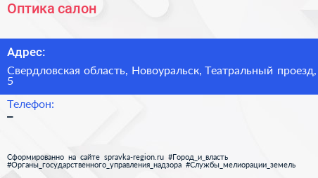 Оптика, салон по адресу Свердловская область, Новоуральск, Театральный проезд, 5 в дальнейшем Организация, размещена в следующих категориях: