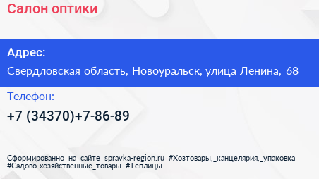 Салон оптики по адресу Свердловская область, Новоуральск, улица Ленина, 68 в дальнейшем Организация, размещена в следующих категориях:
