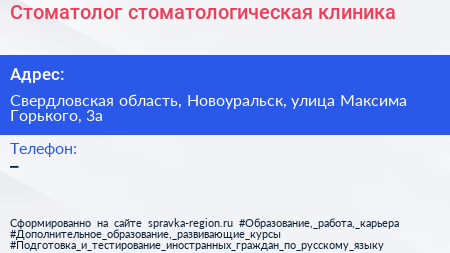 Стоматолог, стоматологическая клиника по адресу Свердловская область, Новоуральск, улица Максима Горького, 3а в дальнейшем Организация, размещена в следующих категориях: