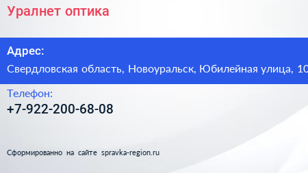 Уралнет, оптика по адресу Свердловская область, Новоуральск, Юбилейная улица, 10 в дальнейшем Организация, размещена в следующих категориях: