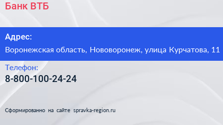 Банк ВТБ по адресу Воронежская область, Нововоронеж, улица Курчатова, 11 в дальнейшем Организация, размещена в следующих категориях: