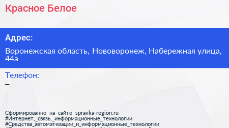 Красное & Белое по адресу Воронежская область, Нововоронеж, Набережная улица, 44а в дальнейшем Организация, размещена в следующих категориях:
