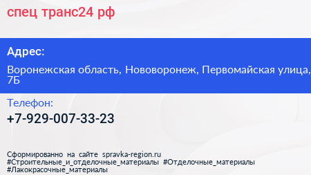 спец-транс24.рф по адресу Воронежская область, Нововоронеж, Первомайская улица, 7Б в дальнейшем Организация, размещена в следующих категориях: