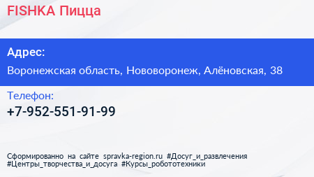 FISHKA Пицца по адресу Воронежская область, Нововоронеж, Алёновская, 38 в дальнейшем Организация, размещена в следующих категориях: