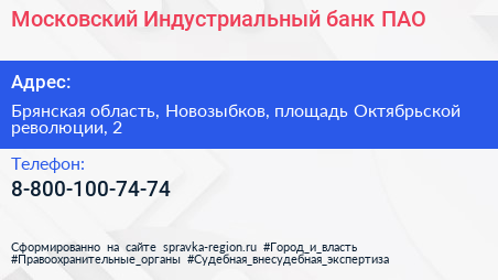 Московский Индустриальный банк, ПАО по адресу Брянская область, Новозыбков, площадь Октябрьской революции, 2 в дальнейшем Организация, размещена в следующих категориях: