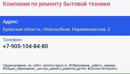 Компания по ремонту бытовой техники по адресу Брянская область, Новозыбков, Наримановская, 2 в дальнейшем Организация, размещена в следующих категориях: