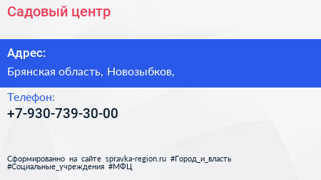 Садовый центр по адресу Брянская область, Новозыбков, в дальнейшем Организация, размещена в следующих категориях: