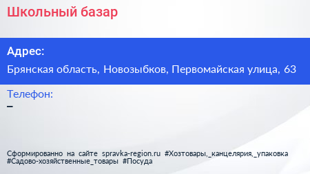 Школьный базар по адресу Брянская область, Новозыбков, Первомайская улица, 63 в дальнейшем Организация, размещена в следующих категориях: