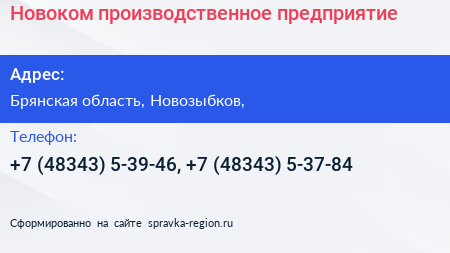 Новоком, производственное предприятие по адресу Брянская область, Новозыбков, в дальнейшем Организация, размещена в следующих категориях: