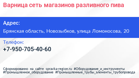 Варница, сеть магазинов разливного пива по адресу Брянская область, Новозыбков, улица Ломоносова, 20 в дальнейшем Организация, размещена в следующих категориях: