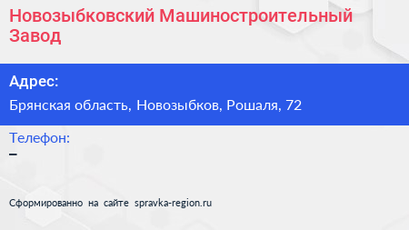 Новозыбковский Машиностроительный Завод по адресу Брянская область, Новозыбков, Рошаля, 72 в дальнейшем Организация, размещена в следующих категориях: