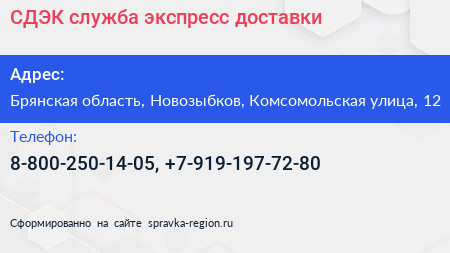 СДЭК, служба экспресс-доставки по адресу Брянская область, Новозыбков, Комсомольская улица, 12 в дальнейшем Организация, размещена в следующих категориях: