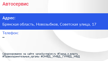 Автосервис по адресу Брянская область, Новозыбков, Советская улица, 17 в дальнейшем Организация, размещена в следующих категориях: