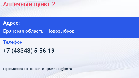 Аптечный пункт №2 по адресу Брянская область, Новозыбков, в дальнейшем Организация, размещена в следующих категориях: