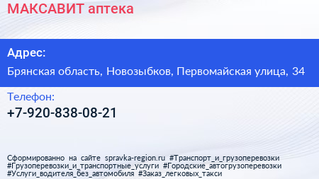 МАКСАВИТ, аптека по адресу Брянская область, Новозыбков, Первомайская улица, 34 в дальнейшем Организация, размещена в следующих категориях: