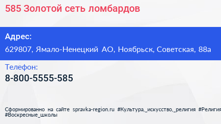 585*Золотой, сеть ломбардов по адресу 629807, Ямало-Ненецкий АО, Ноябрьск, Советская, 88а в дальнейшем Организация, размещена в следующих категориях: