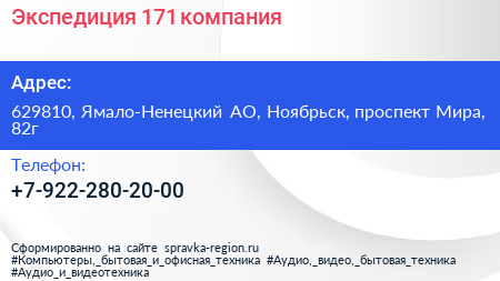 Экспедиция 171, компания по адресу 629810, Ямало-Ненецкий АО, Ноябрьск, проспект Мира, 82г в дальнейшем Организация, размещена в следующих категориях: