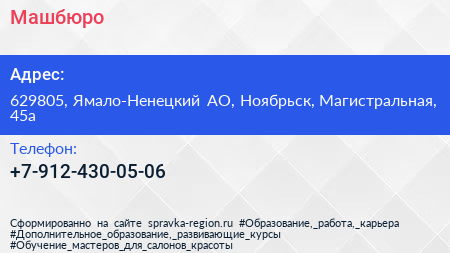 Машбюро по адресу 629805, Ямало-Ненецкий АО, Ноябрьск, Магистральная, 45а в дальнейшем Организация, размещена в следующих категориях: