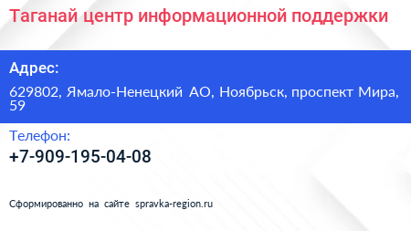 Таганай, центр информационной поддержки по адресу 629802, Ямало-Ненецкий АО, Ноябрьск, проспект Мира, 59 в дальнейшем Организация, размещена в следующих категориях: