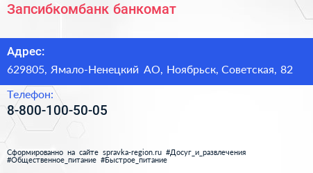 Запсибкомбанк, банкомат по адресу 629805, Ямало-Ненецкий АО, Ноябрьск, Советская, 82 в дальнейшем Организация, размещена в следующих категориях:
