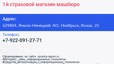 1-й страховой магазин, машбюро по адресу 629804, Ямало-Ненецкий АО, Ноябрьск, Ясная, 25 в дальнейшем Организация, размещена в следующих категориях: