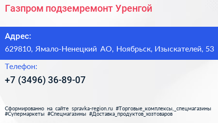 Газпром подземремонт Уренгой по адресу 629810, Ямало-Ненецкий АО, Ноябрьск, Изыскателей, 53 в дальнейшем Организация, размещена в следующих категориях: