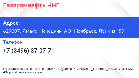 Газпромнефть-ННГ по адресу 629807, Ямало-Ненецкий АО, Ноябрьск, Ленина, 59 в дальнейшем Организация, размещена в следующих категориях: