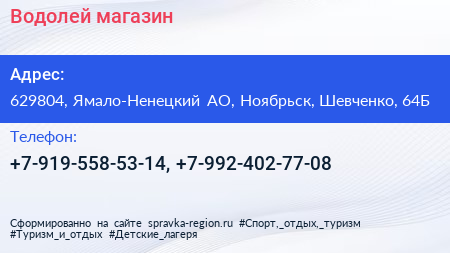 Водолей, магазин по адресу 629804, Ямало-Ненецкий АО, Ноябрьск, Шевченко, 64Б в дальнейшем Организация, размещена в следующих категориях: