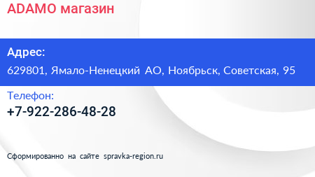 ADAMO, магазин по адресу 629801, Ямало-Ненецкий АО, Ноябрьск, Советская, 95 в дальнейшем Организация, размещена в следующих категориях: