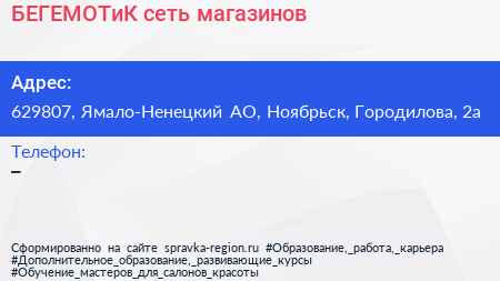 БЕГЕМОТиК, сеть магазинов по адресу 629807, Ямало-Ненецкий АО, Ноябрьск, Городилова, 2а в дальнейшем Организация, размещена в следующих категориях: