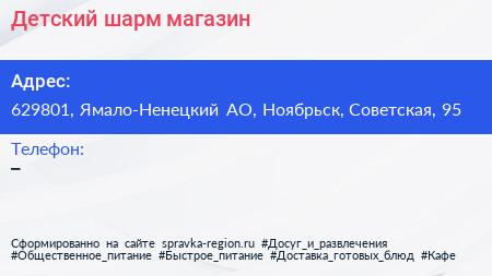 Детский шарм, магазин по адресу 629801, Ямало-Ненецкий АО, Ноябрьск, Советская, 95 в дальнейшем Организация, размещена в следующих категориях: